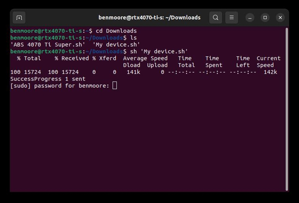 script is unique and will have the same name as the device name you created.Execute the script using the sh